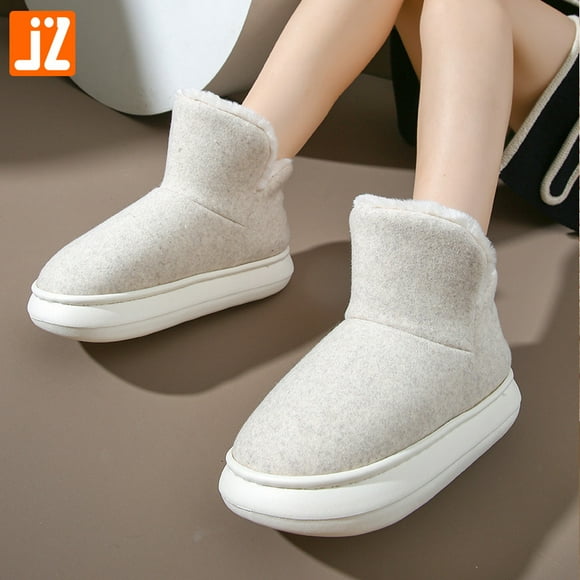 Zapatos de nieve con tacón de bolso de nuevo estilo para mujer, zapatos de algodón cálidos con suela gruesa y caña alta, botas de nieve para exteriores versátiles y de moda para hombresZapatillas de invierno nuevas para el hogar, zapatos viejos de algodón, ropa exterior para mujer, tacón más terciopelo, botas de nieve cálidas para interiores con suela gruesa para hombre, invierno