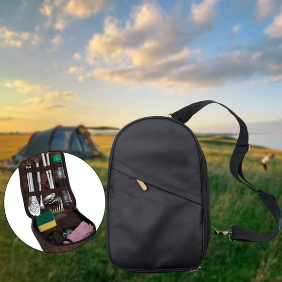 Organizador de utensilios de camping Cola Soporte de vajilla Bolsa de viaje para cocinar al aire libre NegroBolsa multifuncional para esterilla de yoga Cola mochila con bolsillo con cremallera