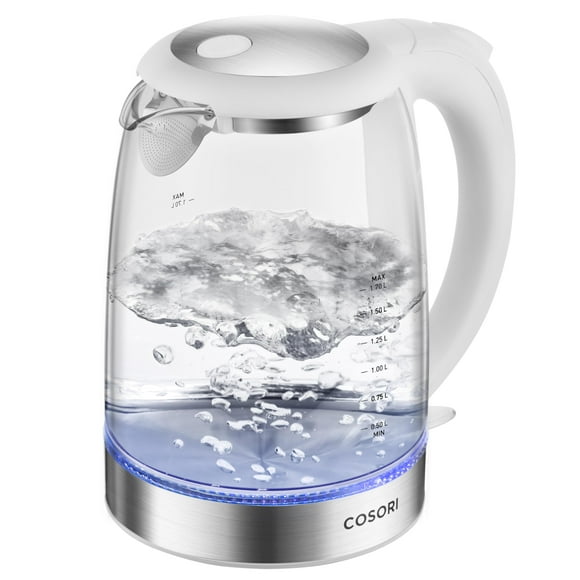 COSORI - Hervidor eléctrico, sin contacto de plástico con agua, 1.7 l/1500 W, tapa interior de acero inoxidable y filtro, tetera para café y té, tetera de agua caliente, caldera y calentador, apagado