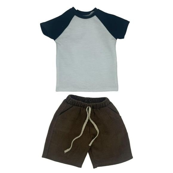 Traje de camiseta de manga corta 1:6, ropa de muñeca hecha a mano, disfraz de moda, ropa en miniatura para figuras de 12 pulgadas, vestido de muñeca, negro CUTICAT Traje de camisa corta