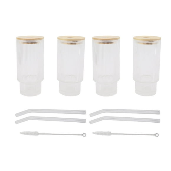 Vasos de vidrio daixiaolindai 11 oz con tapa de Bambú y pajitas para Leche café cerveza