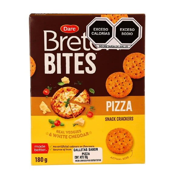 Galletas Breton Bites sabor Pizza de 180 gramosGalletas saladas Dare Bretón cabaret crujientes y cremosas 173 g
