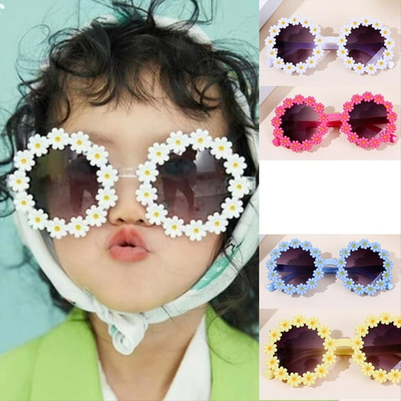 Gafas de Sol Redondas de Flores Gafas de Sol de Margaritas para Niños Gafas de Protección Solar Al Aire Libre Regalo de Cumpleaños de Playa Azul