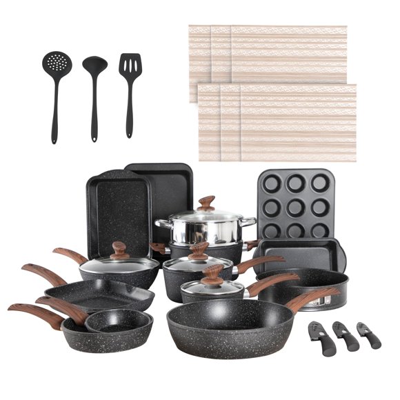 Juego de utensilios de cocina DishDelight, 30 piezas, antiadherentes, granito, inducciónJuego de utensilios de cocina DishDelight Induction Antiadherente de granito, 12 piezas