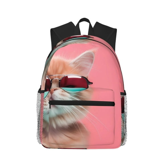Disketp Floral Sunglasses Cat Art Mochila de Lona Estampada, Mochila Escolar de Viaje Ligera para Estudiantes y Portátil-SmallDisketp Cool Cat Pink Sunglasses Mochila Ligera Clásica con Múltiples Bolsillos, Mochila Casual para Hombre y Mujer, Ideal para Escuela, Trabajo y Viajes
