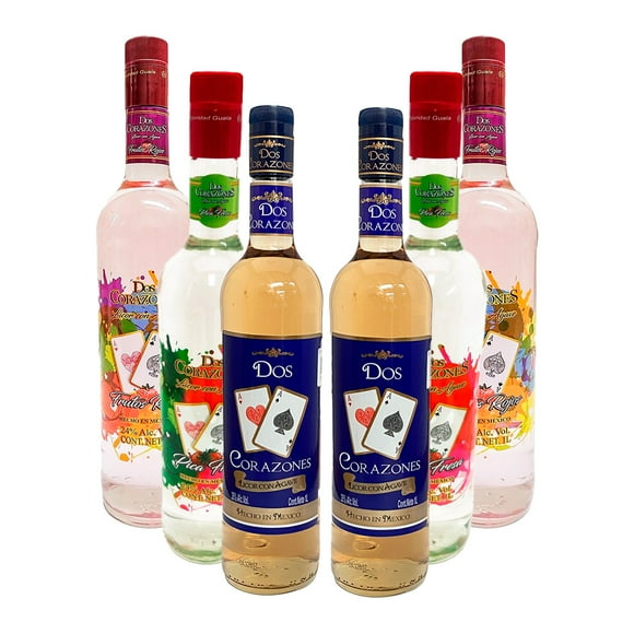 Six Pack Licor de Agave Dos Corazones Surtido 1000 Ml Dos Corazones Licor de Agave