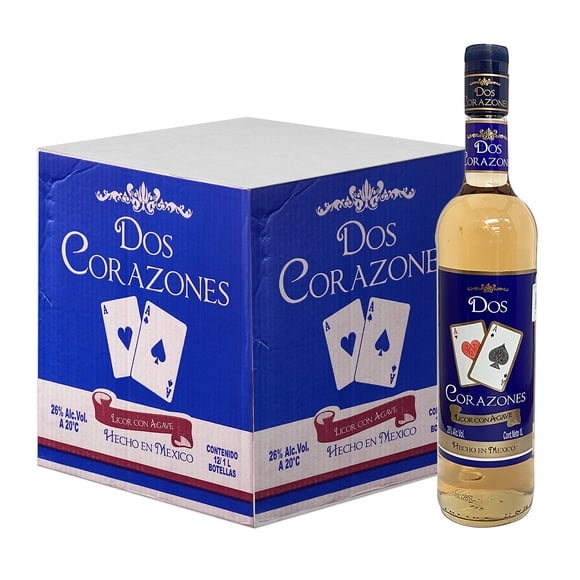 Caja Licor Con Agave Dos Corazones 1l.+18 años
