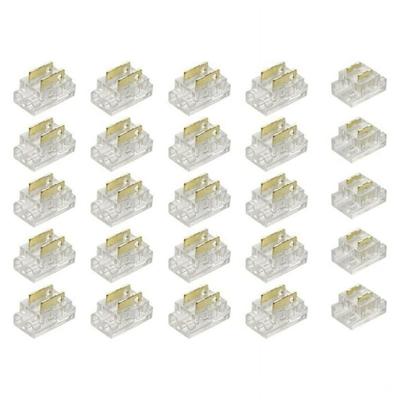 Conector de tira de luz LED de 2 pines y 8 mm de ancho, 24 piezas, para luces de un solo color SMD 3528 2835 flexibles de 8 mm de ancho, sin soldaduraKit de 25 conectores de tira de LED COB de 2 pines y 5 mm para uniones de tira a cable y de tira a tira en luces de CC de 5 V a 24 V