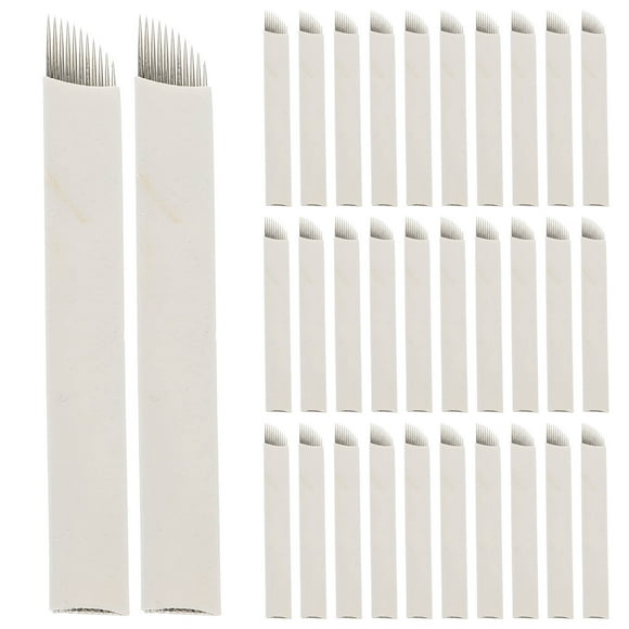 EeaseMX 50 cuchillas para maquillaje permanente de cejas, 11 agujas, pluma de microblading (blanca)EeaseMX 50 cuchillas en forma de U, 14 agujas para maquillaje de cejas, pluma de microblading (blanca)
