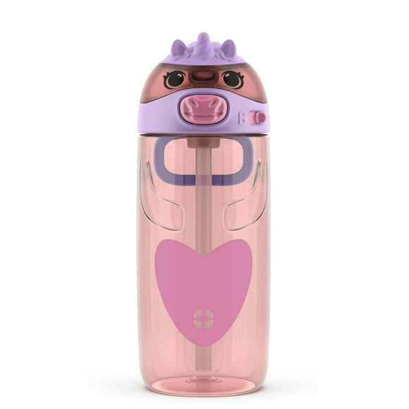 Botella de agua Ello Ellies Plastic Kids de 473 ml con pajita unicornio