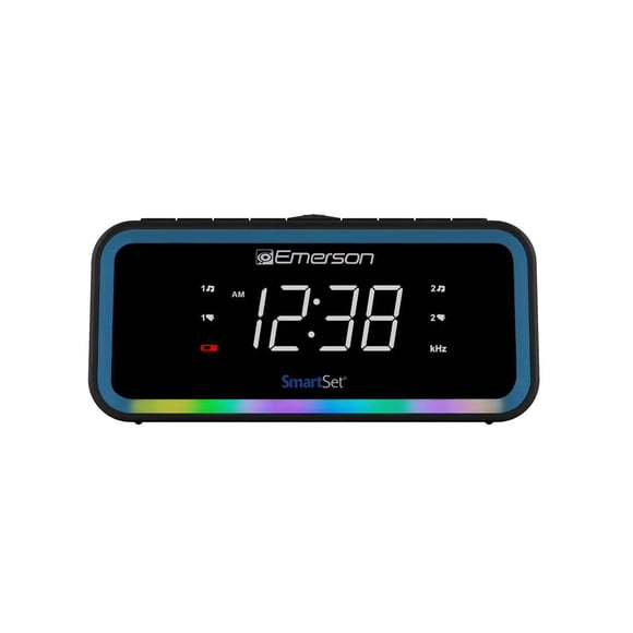 Emerson CKS1401 Smartset AM/FM Radio reloj despertador dual con pantalla LED blanca de 0,9" con control de atenuación de 4 niveles, carga USB-C y decoración LED multicolor de 2 niveles213.9048 de 5 estrellas. 21 reseñas