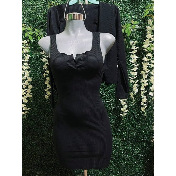 Vestido Corte De Lechuga Con Sueter Conjunto Color Negro Talla Grande Marca Emil SaEs