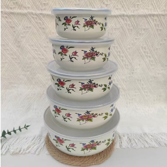 Cuenco para conservas de esmalte, juego de 5 cuencos para hielo, recipiente para conservas de esmalte, recipiente refrigeradoPlato hondo de cerámica para sopa, plato redondo grande para ensalada, plato hondo para el hogar, plato de cuatro estaciones pintado a mano creativo