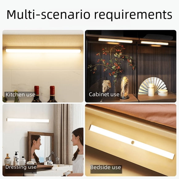 Lámpara LED de inducción de cuerpo humano inteligente ultradelgada, tira larga, magnética, autoadhesiva, recargable, para armario, armario de vino