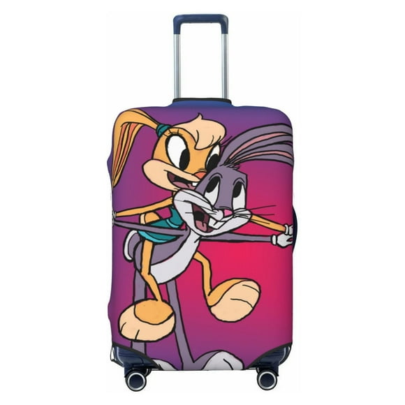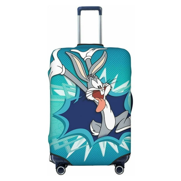 Rieles de cuatro ruedasFunda de equipaje de viaje con dibujos animados de Bugs Bunny, bonita funda protectora elástica lavable para maletas, antiarañazos, elástica para vacaciones y negocios