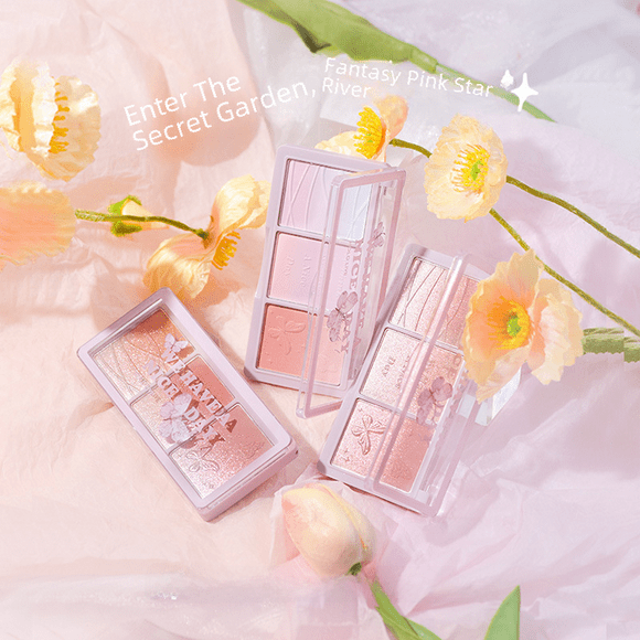 Barra reparadora de doble propósito de alto brillo y sombraRubor tricolor Gills Purple Gill Blue Reparador facial natural Peach de larga duración