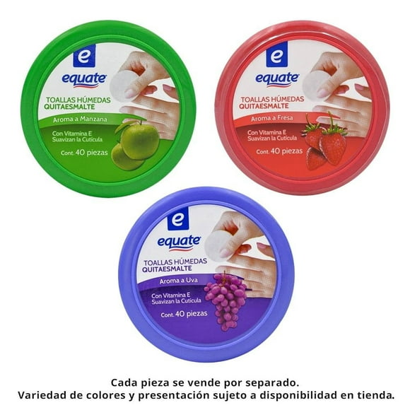 Quita esmalte Equate fuerte 550 mLToallas húmedas quitaesmalte Equate varios aromas con 40 pzas