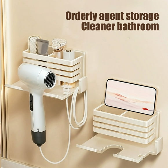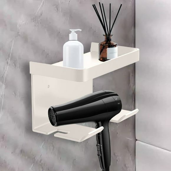Almacenamiento y organización del baño, organizadores y almacenamiento de armarios, soporte para secador de pelo sin perforación, estante para secador de gas para baño, estante para colocar el colgadoEstante de almacenamiento para secador de pelo con ventosa de pared, sin perforaciones, para baño, de aleación