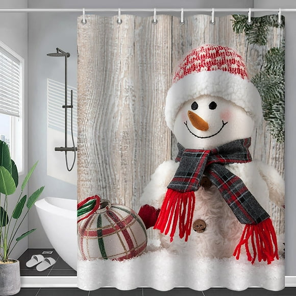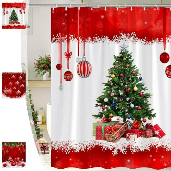 Cortina de Ducha Navideña de Poliéster | Resistente a La Humedad | 120 X 180 Cm | con Ganchos | Ideal para Baños Estándar | Evita Salpicaduras de Agua | Referencia: Jwz251013002Fiudx Cortina de Ducha Navideña, Impermeable, de Pvc, con Elegante Estampado de Copos de Nieve, Estilo Festivo Europeo-Americano, Ideal para Baño, Incluye Ganchos, 183 X 183 Cm.