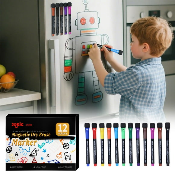 Marcadores Magnéticos para Pizarra Blanca, Paquete de 12 | Marcadores de Punta Fina y Colores con Borrador | Ideales para El Hogar, La Oficina y La Escuela