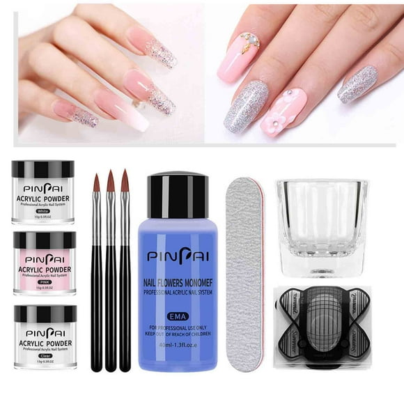 Fiudx Set de Uñas de Cristal, Polvo Acrílico Tricolor, Líquido Acrílico Monómero, Pincel Profesional para Uñas, Extensiones de Uñas Diy, para Amantes de La Manicura, Satisfacción Garantizada.
