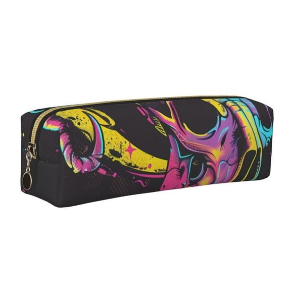 Fotbe Neon Gothic Skull Moon Estuche para Lápices de Cuero con Estampado, Estuche con Cremallera Resistente, Organizador Compacto y Elegante para PapeleríaAvailable for Envío internacionalEnvío internacional