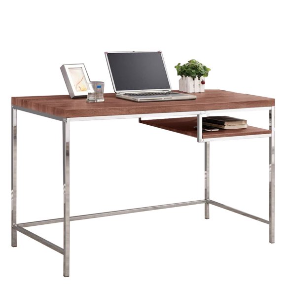 Escritorio Simple para computadora de oficina en casa con estante de almacenamiento FRATELLO MUEBLESEscritorio de Madera FRATELLO MUEBLES Sorano Organizador Estante Inferior 120x76 Color Nogal
