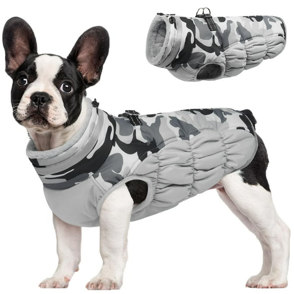 Chaqueta de invierno para perros FUAMEY Grey Camo con arnés para perros XS-XXXLAvailable for Envío internacionalEnvío internacional