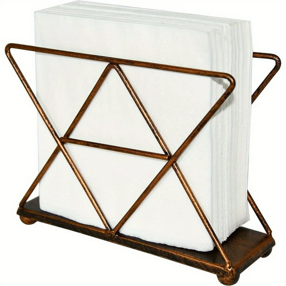 QUTETN Copper Modern Geometric Triangle Metal Wire Upright Napkin Holder