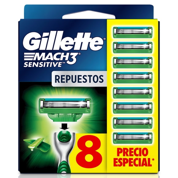 Rastrillo Gillette Mach3 Sensitive 8 Repuestos con Aloe, Piel Sensible