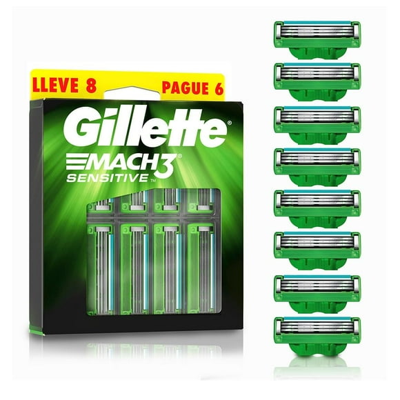 Cartucho de rastrillo Gillette Mach3 Sensitive con aloe, piel sensible 8 pzas