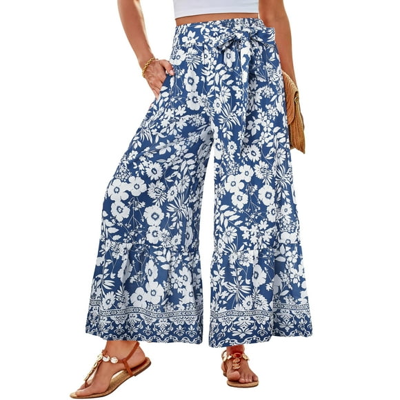 Falda GRACE KARIN de chifón, cintura alta, acampanada, línea A, negra MPantalones Palazzo GRACE KARIN, informales, fluidos, veraniegos, playa 2025, azules