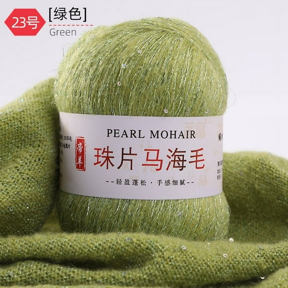 Granjero Gordo Hilo de lentejuelas de punto de 100 g, hilo de lana de encaje suave y esponjoso para tejer a crochet, verde oscuro