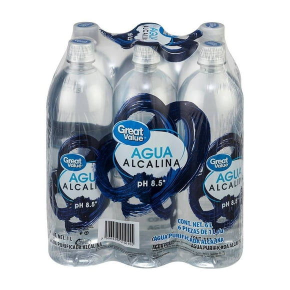 Agua alcalina Great Value 6 botellas de 1 l c/u