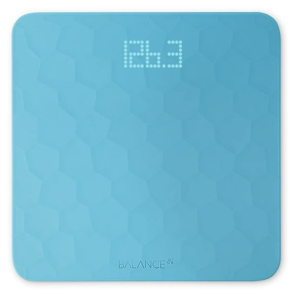 Báscula de baño digital de alta precisión Greater Goods para peso corporal, con cubierta de silicona texturizada antideslizante, capacidad de 400 lb, color azul