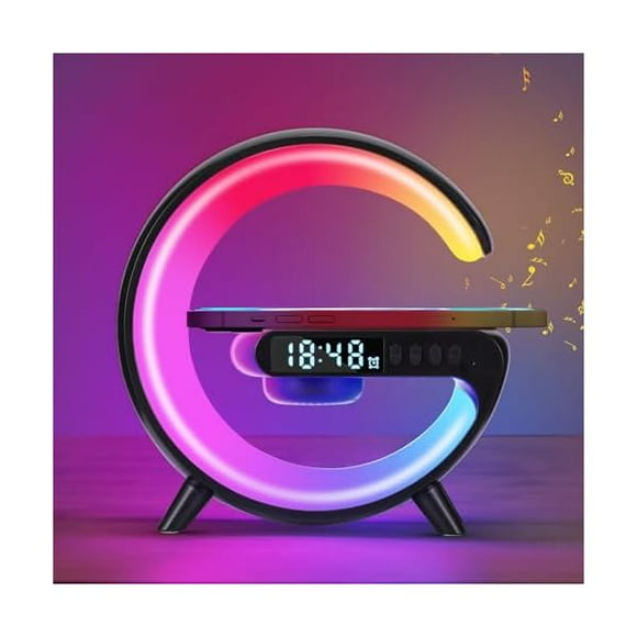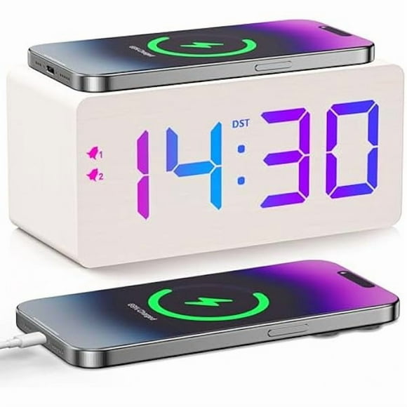 HAYANWooden Digital Alarm Clock with Fast Wireless Charger, Dual USB Charging Ports, DST, Dimmable, Snooze, RGB Large Number Display LED Clock for Bedrooms, Living Room, Desk, Table, Bedside(White)HAYANWireless Charger Atmosphere Lamp, New Mini LED Table Lamp, Bluetooth Speaker, Dimmable Night Light Bedside Lamp Alarm Clock with Music for Christmas Birthday New Year Gifts