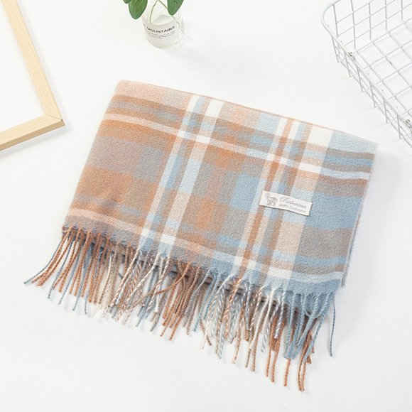 Bufanda a cuadros para mujer, moda coreana, chal con borlas, bufanda cálida de cachemira gruesa y largaBufanda de cachemira de color para mujer, bufanda a cuadros para otoño e invierno, bufanda tipo chal con borlas
