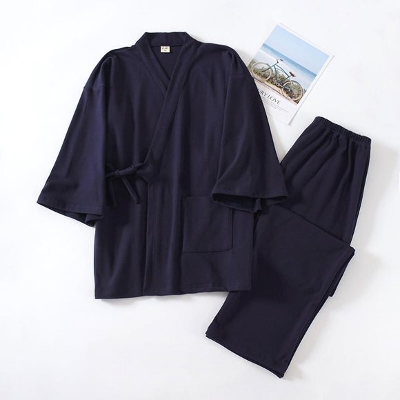 Pijama tipo kimono para hombre sin estampado, estilo otoño e invierno, grueso, cálido, de gran tamaño, 200 kg, con cordones, traje de casa de terciopeloAvailable for Envío internacionalEnvío internacional