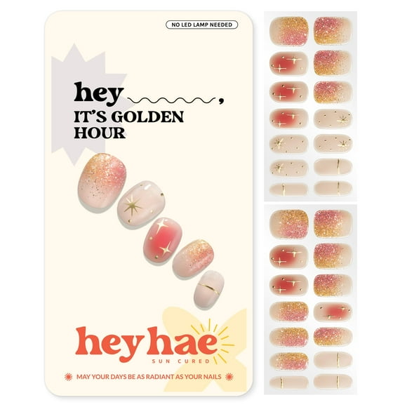 Tiras de uñas Heyhae, gel semicurado, degradado, dorado y primavera, 28 unidadesTiras de gel para uñas Heyhae, semicuradas, con estampado floral veraniego, 28 tiras