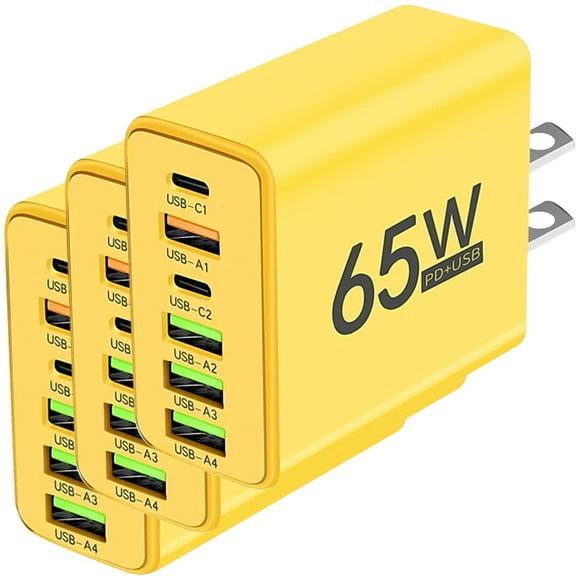 Cargador Teléfono NexusYellow 3 Pzas 6 Puertos USB 5V 3A Max 65W 100-240V 50-80Hz Amarillo.Cargador USB EU HotShot NexusYellowEU 3 Pzas 6 Puertos USB 5V 3A Max 65W 100-240V 50-80Hz Amarillo