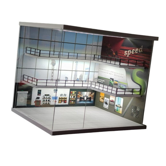 Vitrina para diorama de coche a escala 1/64 con iluminación, alimentación USB, a prueba de polvo, 28x23x23cm, transparente. Estilo B