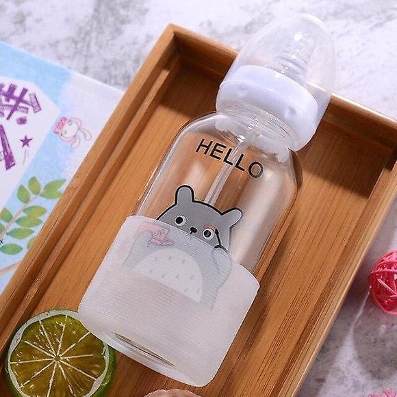 Biberón de vidrio con pajita para bebé con báscula, portátil, para aprender a beber