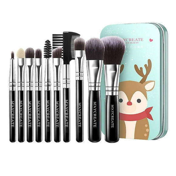 Set de 10 brochas de maquillaje para base y delineador de cejas