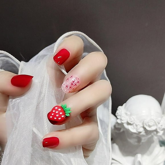 Parche de uñas HUOGUO 3D Fresa, 24 unidades, Sweet Style para mujer