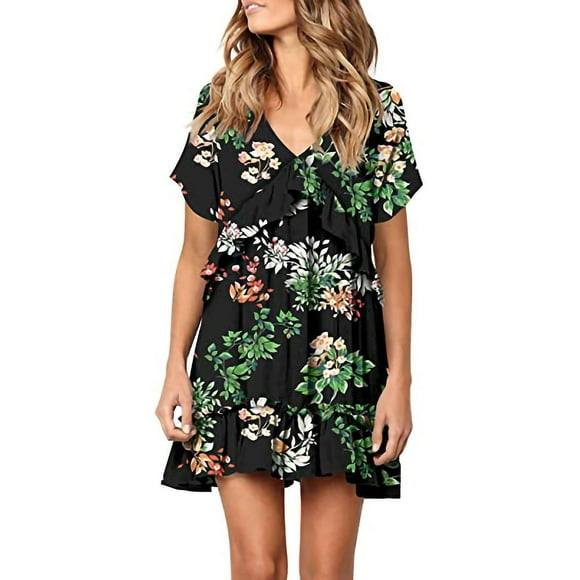 Vestido HUOGUO, moderno y casual con estampado floral para mujerVestido casual HUOGUO con estampado de rayas y cuello en V de manga corta para mujer