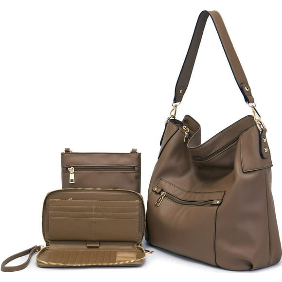 Bolsos cruzados grandes para mujer, bolsos de hombro, conjunto de monedero y cartera para mujer, bolsos HoboBandolera Idesort, bolso de hombro grande, conjunto gris