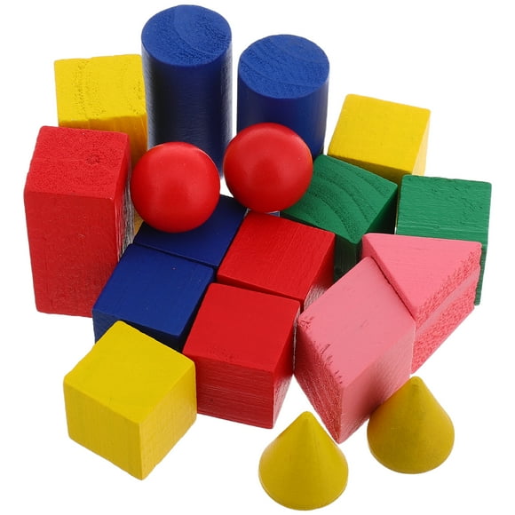 18 piezas de figuras geométricas para estudiantes, cubos geométricos, bloques de geometría sólida, piezas de madera para bloques de geometría, repuestos para bloques de geometría sólida.