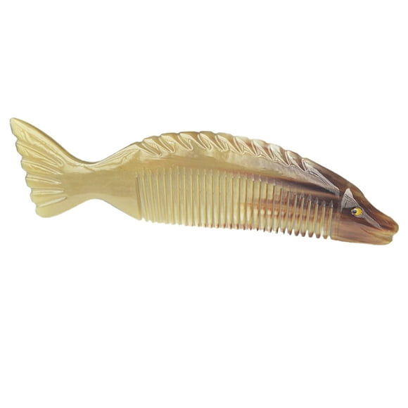Peine de cuerno de buey, peine de cuerno natural y delicado, peine creativo con forma de pez, peine alisador portátil, herramienta de peluquería para mujer (puede haber diferencias entre lotes).