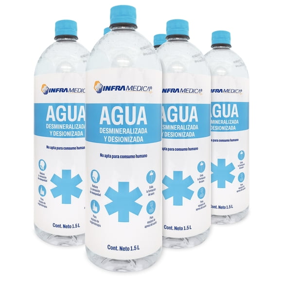 Agua Desmineralizada Desionizadas Infra Pack 6 Botellas 1.5 LitrosAgua Desmineralizada Destilada Infra Pack 12 Botellas 1.5 Litros
