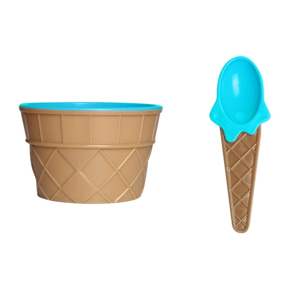 Inteprter Taza de helado para niños, postre para niños, regalos de helado, tazón de postre encantador, tazón de mezcla de PP con cuchara, juego de Mostrada Azul Inteprter HA001694-03